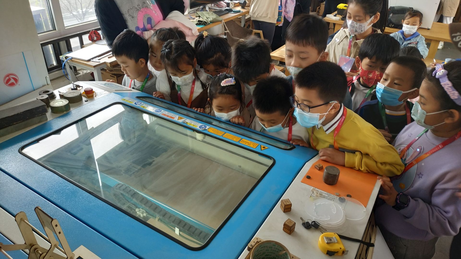 滕老师给小记者们介绍道:如今,中国传承千年的木工文化和现代科技的碰撞,从传统的榫卯技术出发,到现在的激光切割、算法编程、新型材料、3D建模打印,百花齐放的现代科技,让木艺绽放出新的魅力。爱智作匠创空间倡导学生开放性思维,启发学生善于发现生活中的问题,鼓励学生从制作中养成学生科学探究的能力。