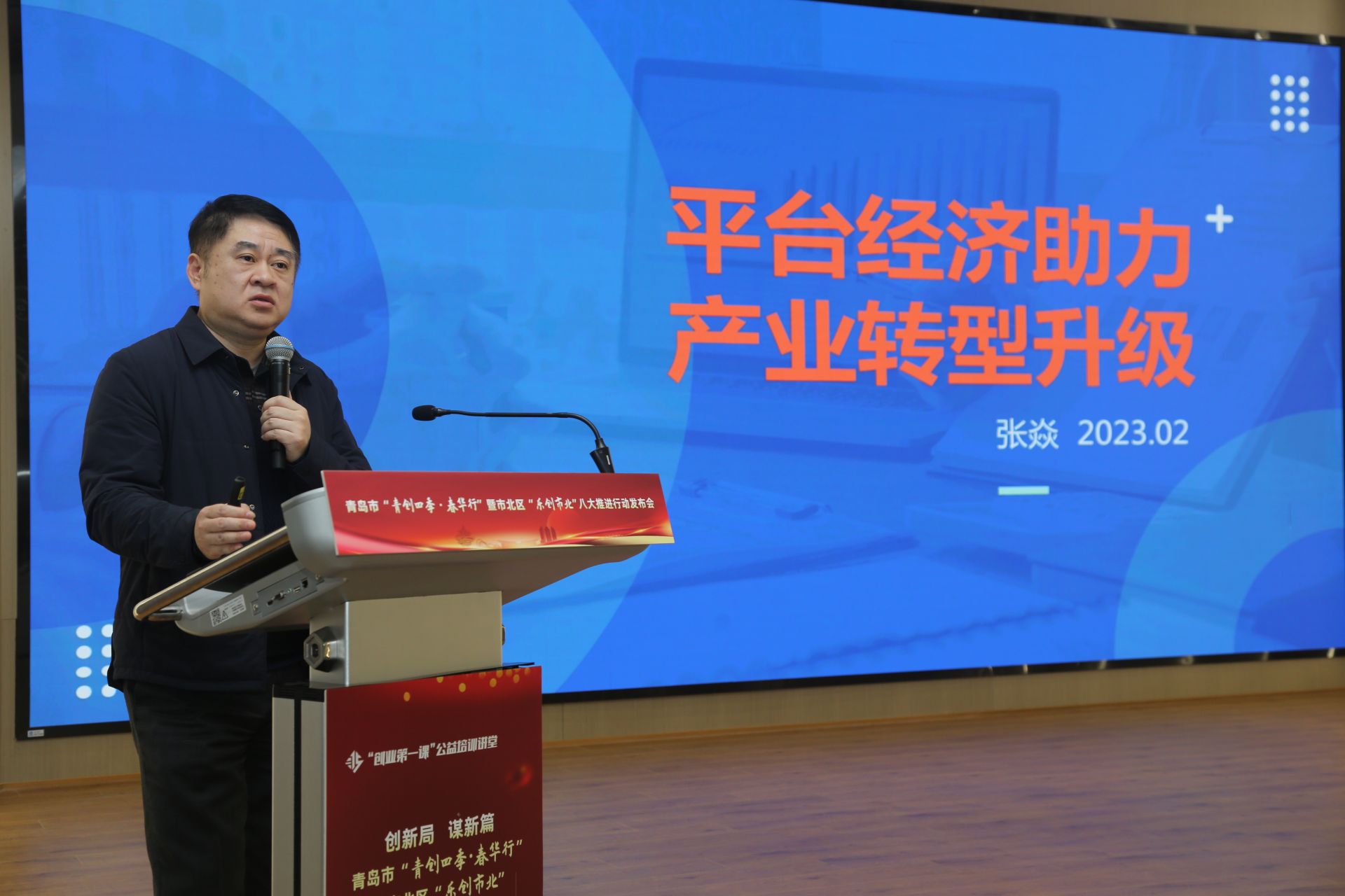 发布仪式结束后,现场接续开展了市北区优秀创业项目产投推介会和青岛市“创业第一课”公益培训讲堂。厚业集团、荷田水铺、青岛市咖啡文化协会等先后登台推介展示项目、寻求合作,橡胶谷集团董事长兼总裁张焱以《平台经济助力产业转型升级》主题分享为整场活动画上了圆满的句号。