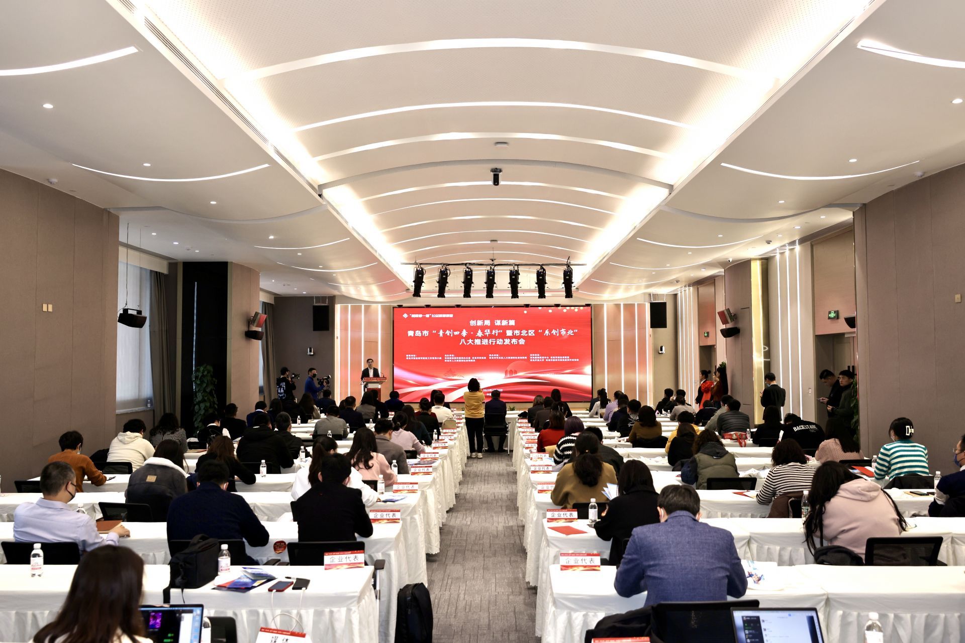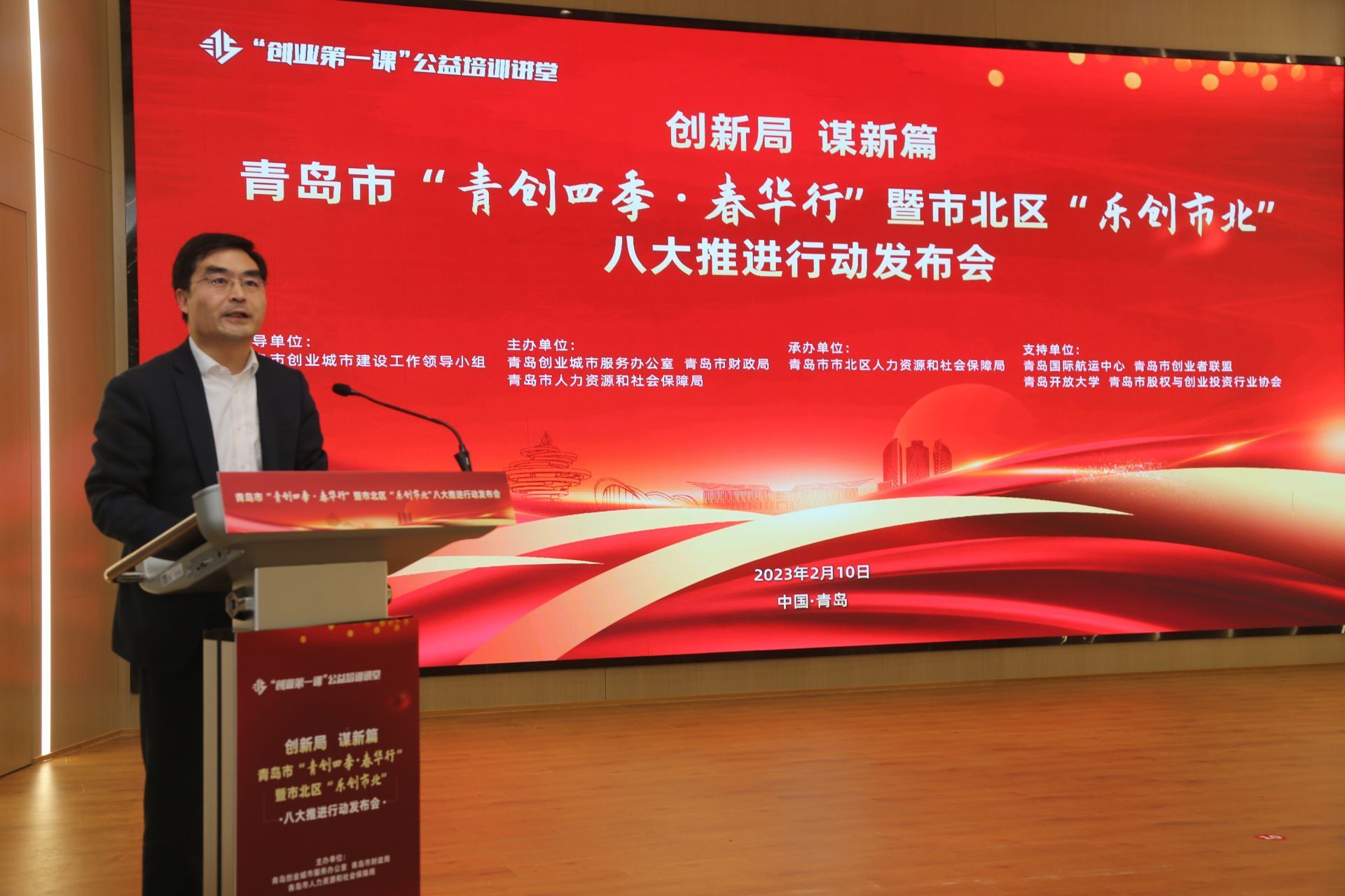 2月10日下午,青岛市“青创四季·春华行”暨市北区“乐创市北”八大推进行动发布会在青岛国际航运中心隆重举行。