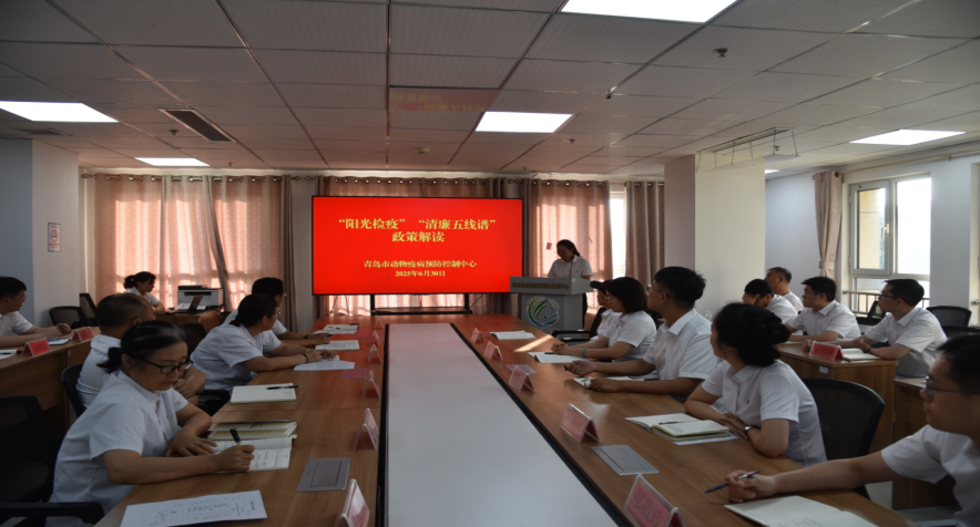 6月30日,青岛市动物疫病预防控制中心组织全体党员干部开展“八项规定筑防线 坚守初心迎‘七一’”主题党日活动,组织开展讲授专题党课,从“三个维度”阐述廉洁从政的政治标尺。聚焦“清廉五线谱”廉政品牌建设,在全市官方兽医、执业兽医、乡村兽医三支队伍中深入开展清风肃纪教育;聚焦“阳光检疫”业务品牌规范,细化动物检疫“三大行动”实施路径,“双提升”强本领,“三个不让”转作风,“五化”行动优流程,为锻造政治坚定、作风优良的兽医队伍注入强劲“廉动力”。