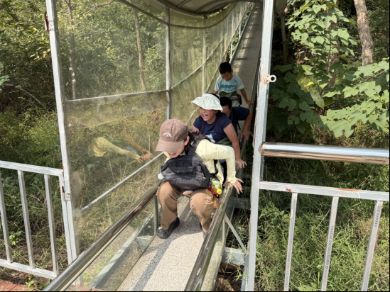 游乐场里此起彼伏的笑声与加油声回荡在山谷间,小记者们在尽情嬉戏中,也悄悄拉近了彼此的距离。