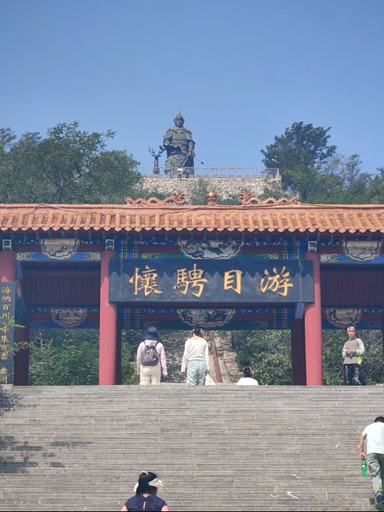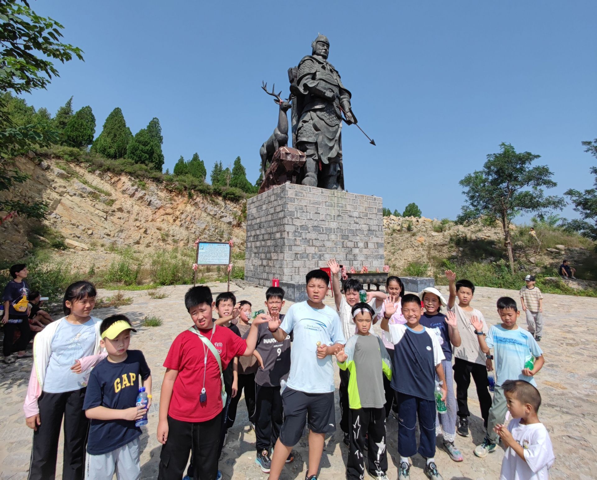 山顶,一座镌刻着岁月痕迹的获鹿大将军雕塑映入眼帘,其高大的身形与威严的神态让小记者们不由自主地驻足。
