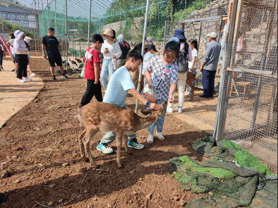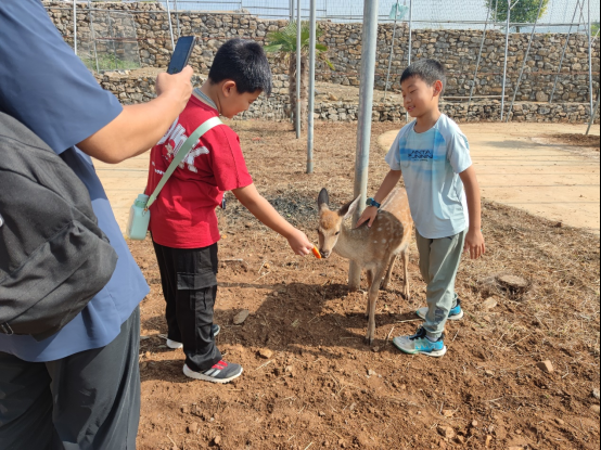 小记者们和小鹿亲密接触。