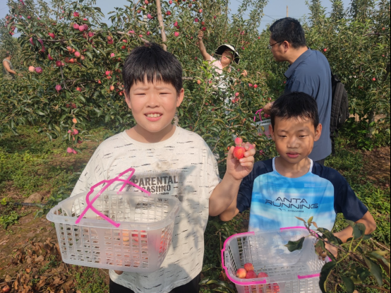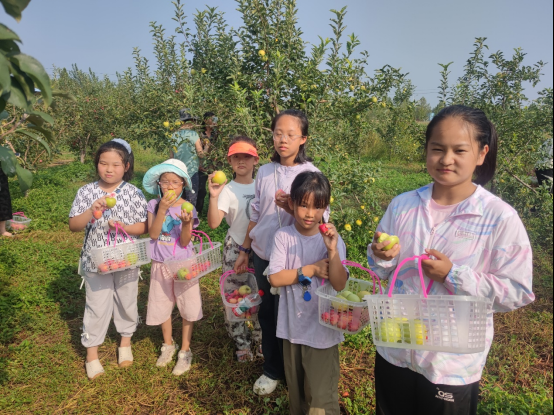 小记者们参加采摘活动。