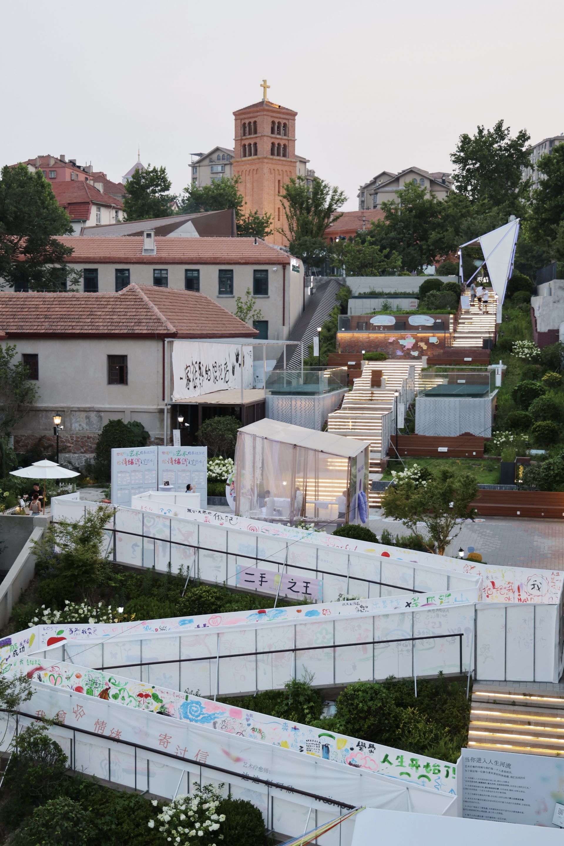 漫步在蜿蜒的马牙石坡道上,两侧是复古与现代交织的里院建筑。孩子们在“文化梯田”上追逐嬉戏,年轻人在设计师品牌店里流连忘返,老人们坐在“无界剧场”旁回忆往昔……位于无棣路历史文化街区的“波螺油子艺术谷”,在城市更新的浪潮中烟火重燃,蜕变成老城活力消费的新地标。