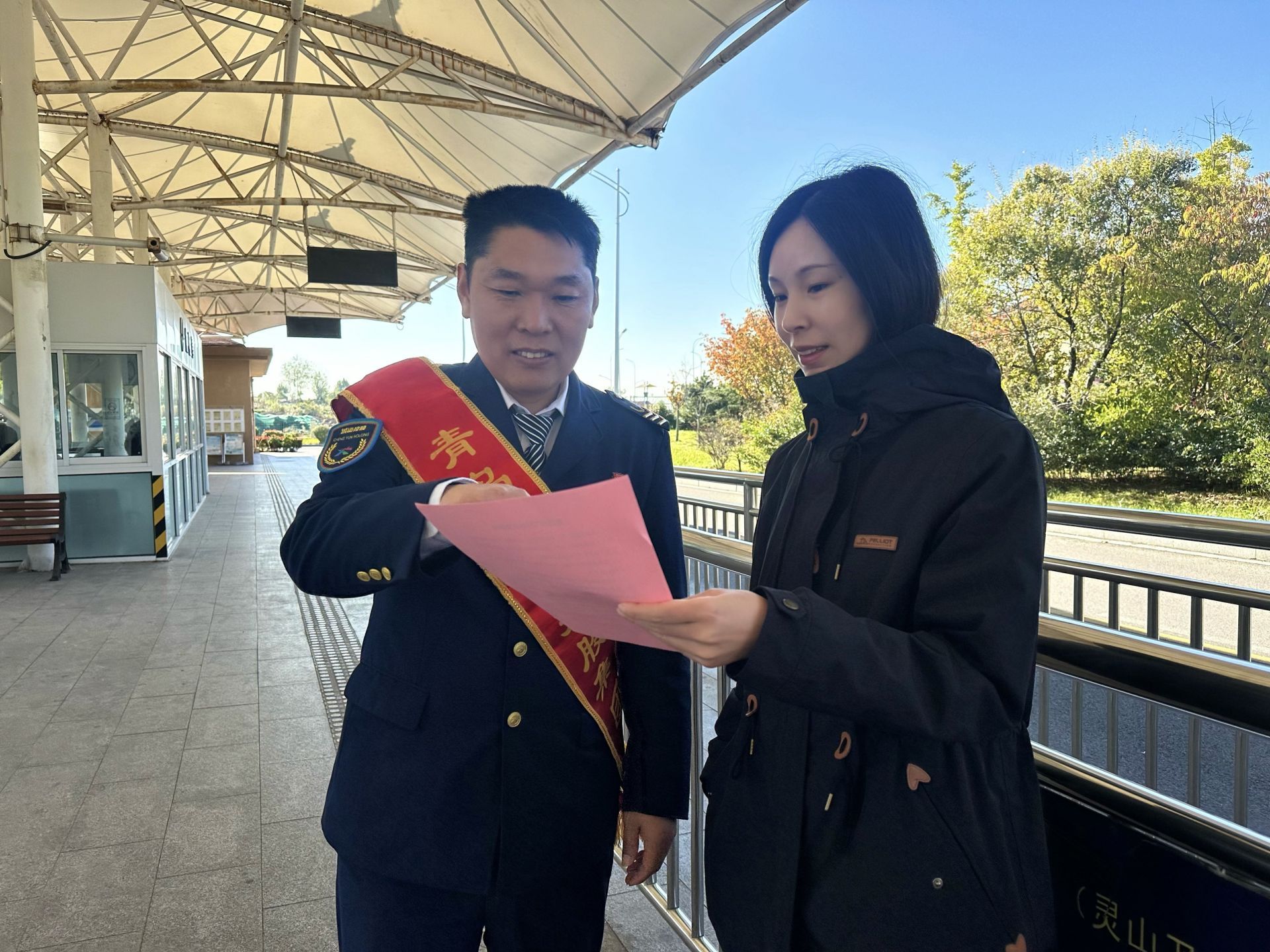 除了车厢内的静态宣传,工作人员也主动走进仰口、汽车东站、灵山卫公交枢纽站等多个客流密集站点,向过往乘客发放宣传单页,并进行面对面的安全提示。他们特别提醒市民,在使用煤炉、电取暖器等设备时,务必注意保持室内空气流通,定期开窗通风,避免因密闭环境导致一氧化碳积聚引发危险。